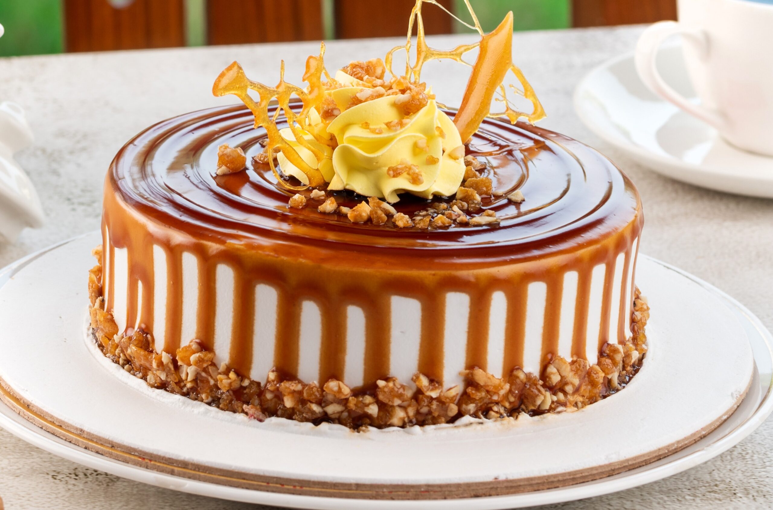 Butterscotch, caramel, and chocolate come together in this tasteful cake.